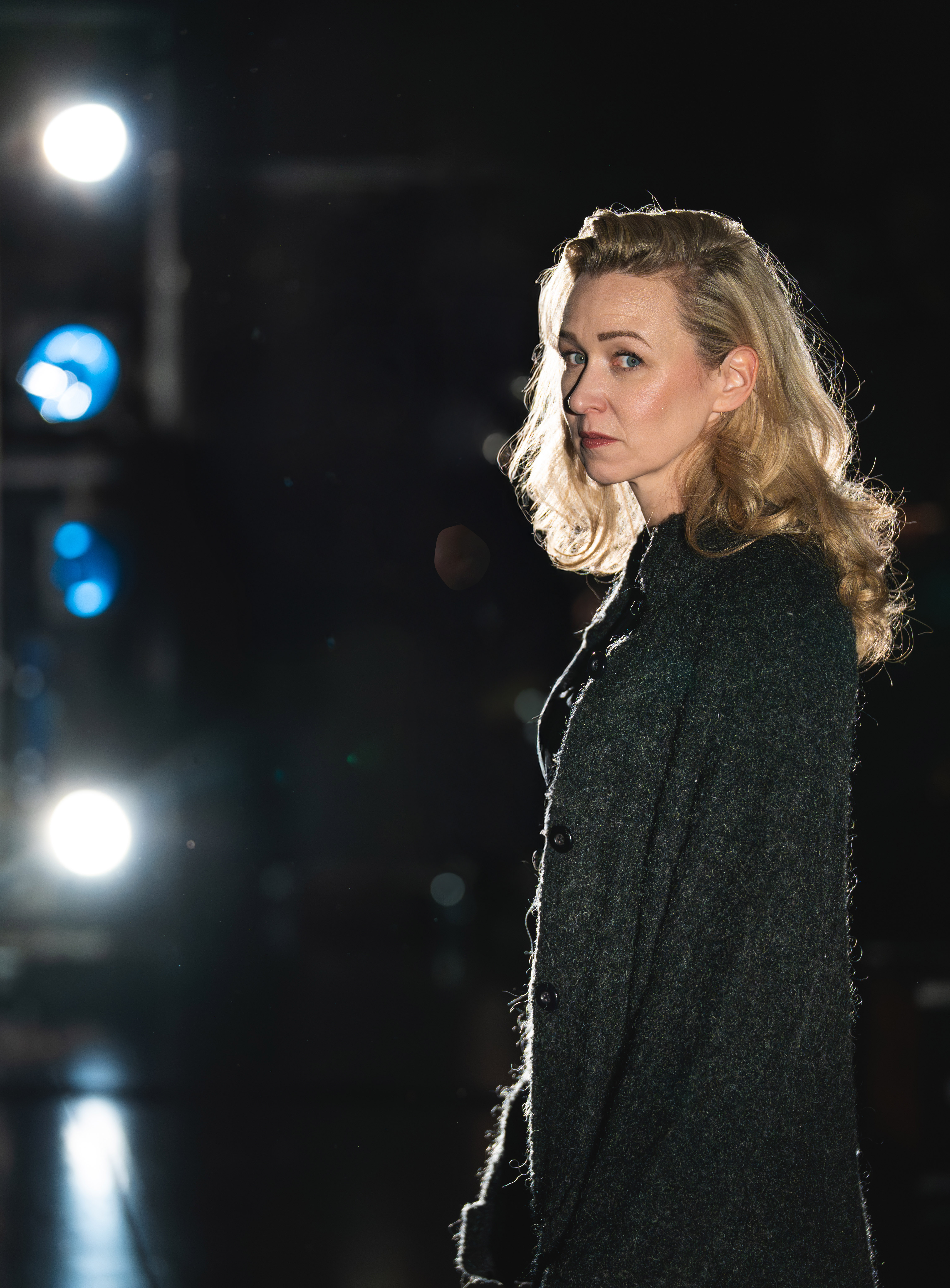 Solveig Nordensson (Julie Moe Sandø) døyr tidleg i forteljinga, men er høgst til stades i minnet til dei gjenlevande. Foto: Siren Høyland Sæter/Det Norske Teatret.