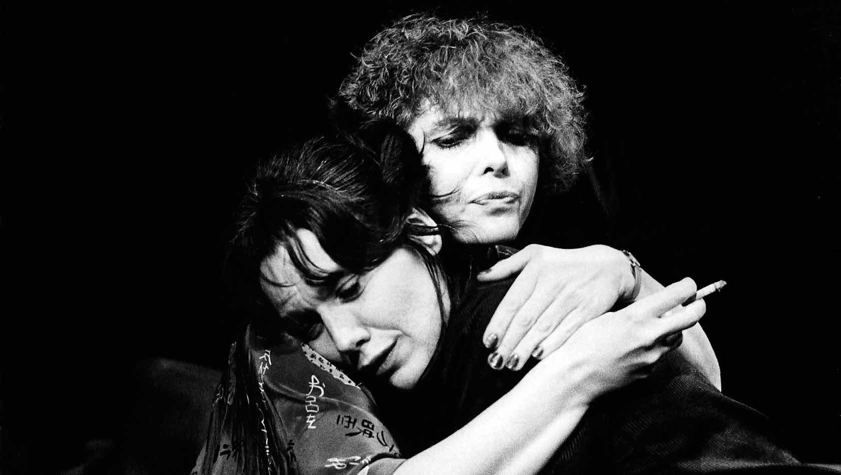 Unn Vibeke Hol som Charlotte og Ragnhild Hilt som Monica i Nattverden, Scene 2 på Det Norske Teatret, 1985. Regi: Göran Stangertz. Foto: Frits Solvang.