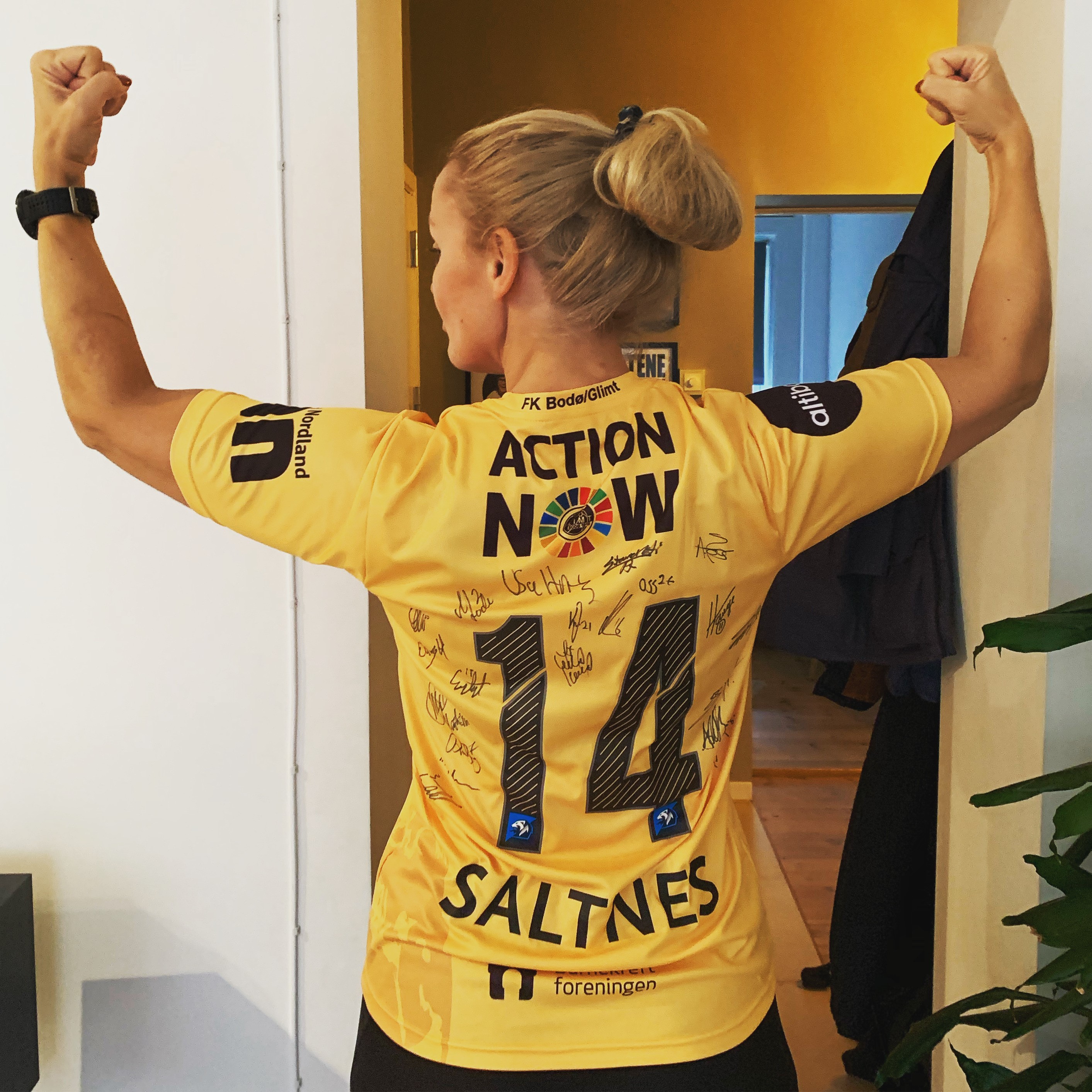 Ellen Birgitte Winther i sitt private supportarutstyr.