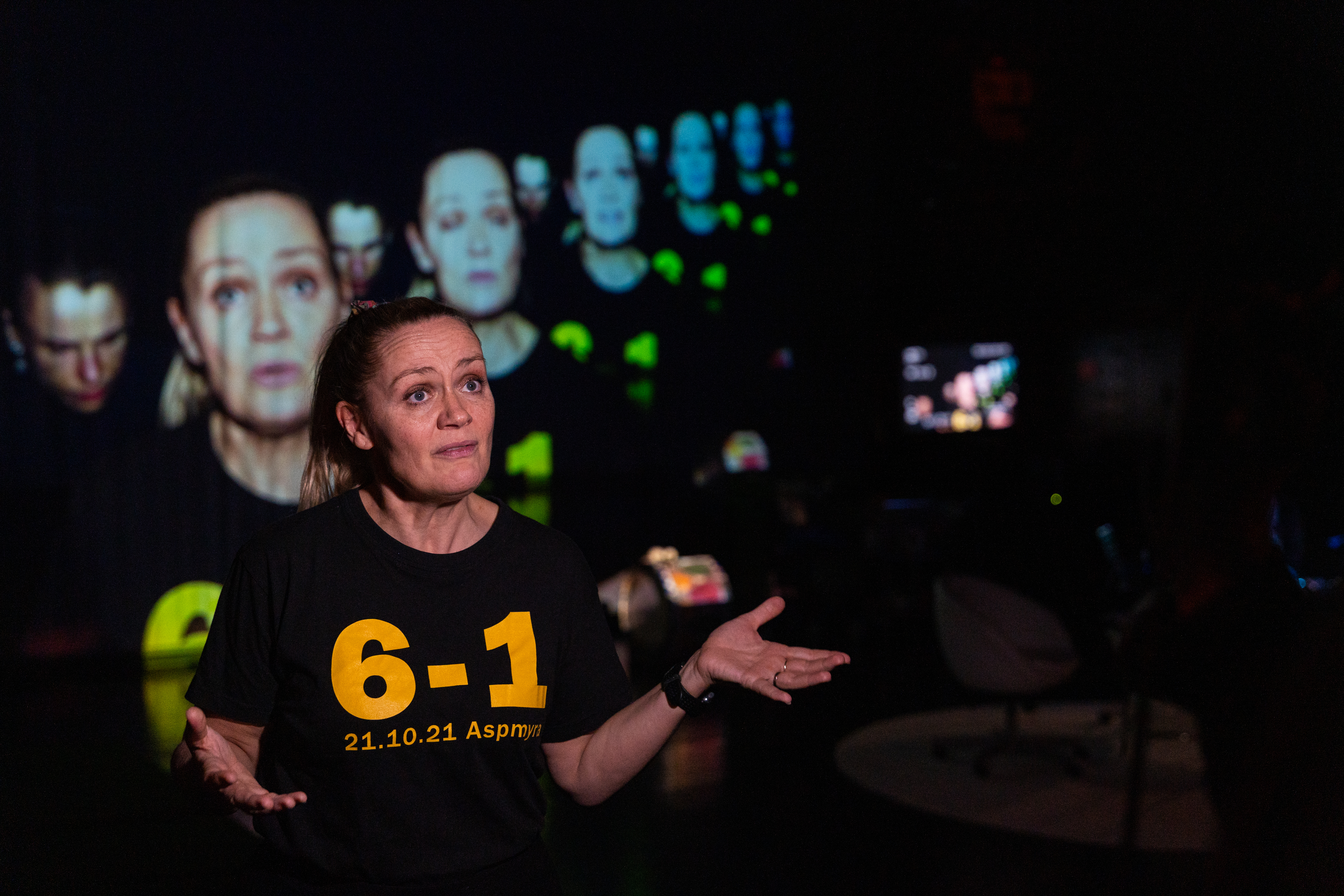 Ellen Birgitte håpar det reine og det magiske ved sporten kan vinne fram. At gleda og magien slår kynismen og maktspelet. - Men om lidenskapen min for fotballen gir meg større forståing for Jelineks tekst, er eg meir usikker på. Det er ikkje nødvendigvis publikummet frå Aspmyra stadion som bør ta turen til Scene 3. Jelinek har eit langt meir distansert og intellektuelt blikk på fotballen. Men eg kan vere ei god motvekt og bringe inn ein entusiasme for sporten som kan skape meir balanse i framsyninga, kanskje. Det er nok mange som kan sjå fotball som noko lågkulturelt, men der er eg ikkje einig. Fotball er samhald, glede, det er magi og det er ein identitetsbyggar. Eg elskar fotball. Verkeleg, seier ho med overtyding.