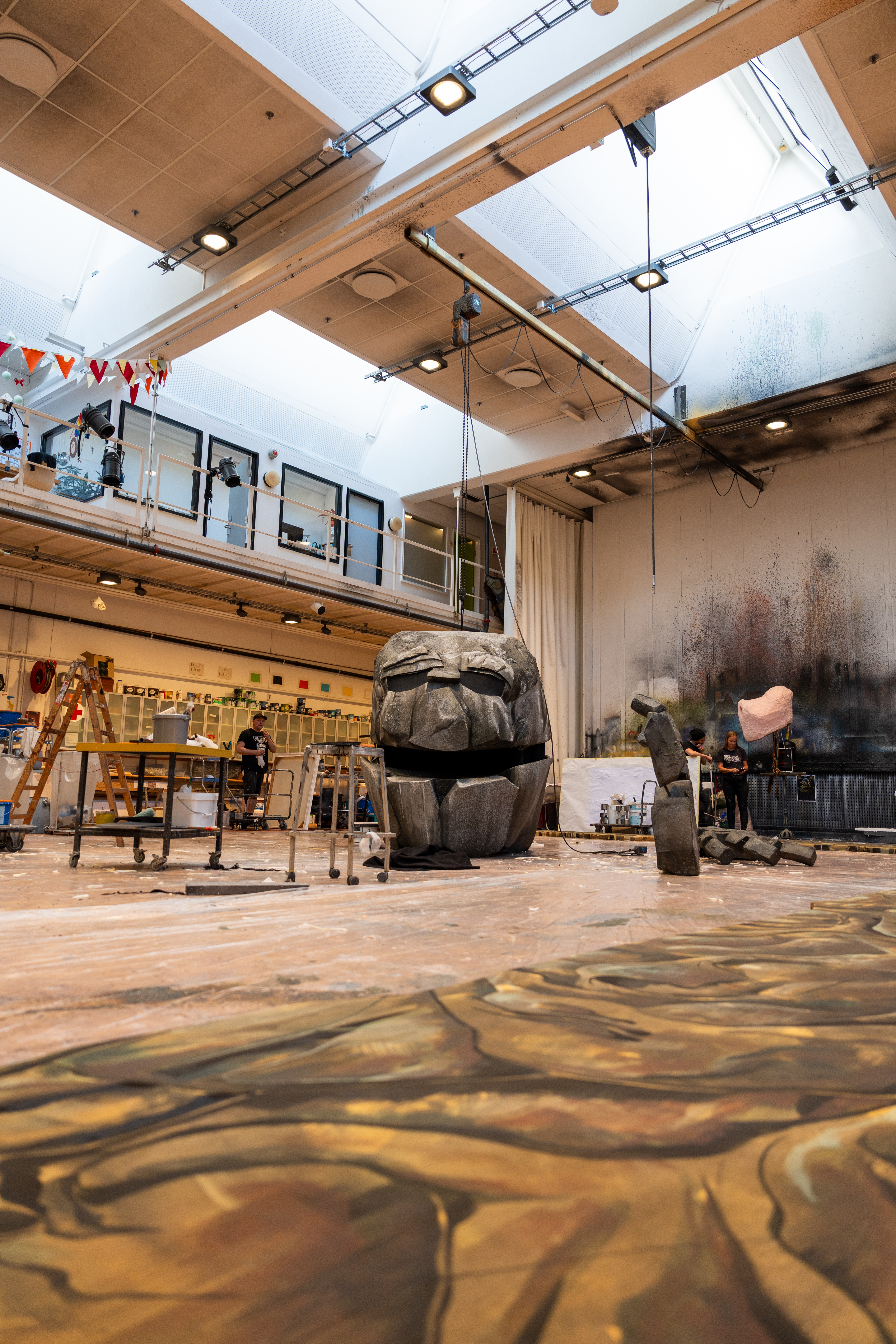 Stein knaskaren blir til på målarsalen. Foto: Monica Tormassy/Det Norske Teatret.