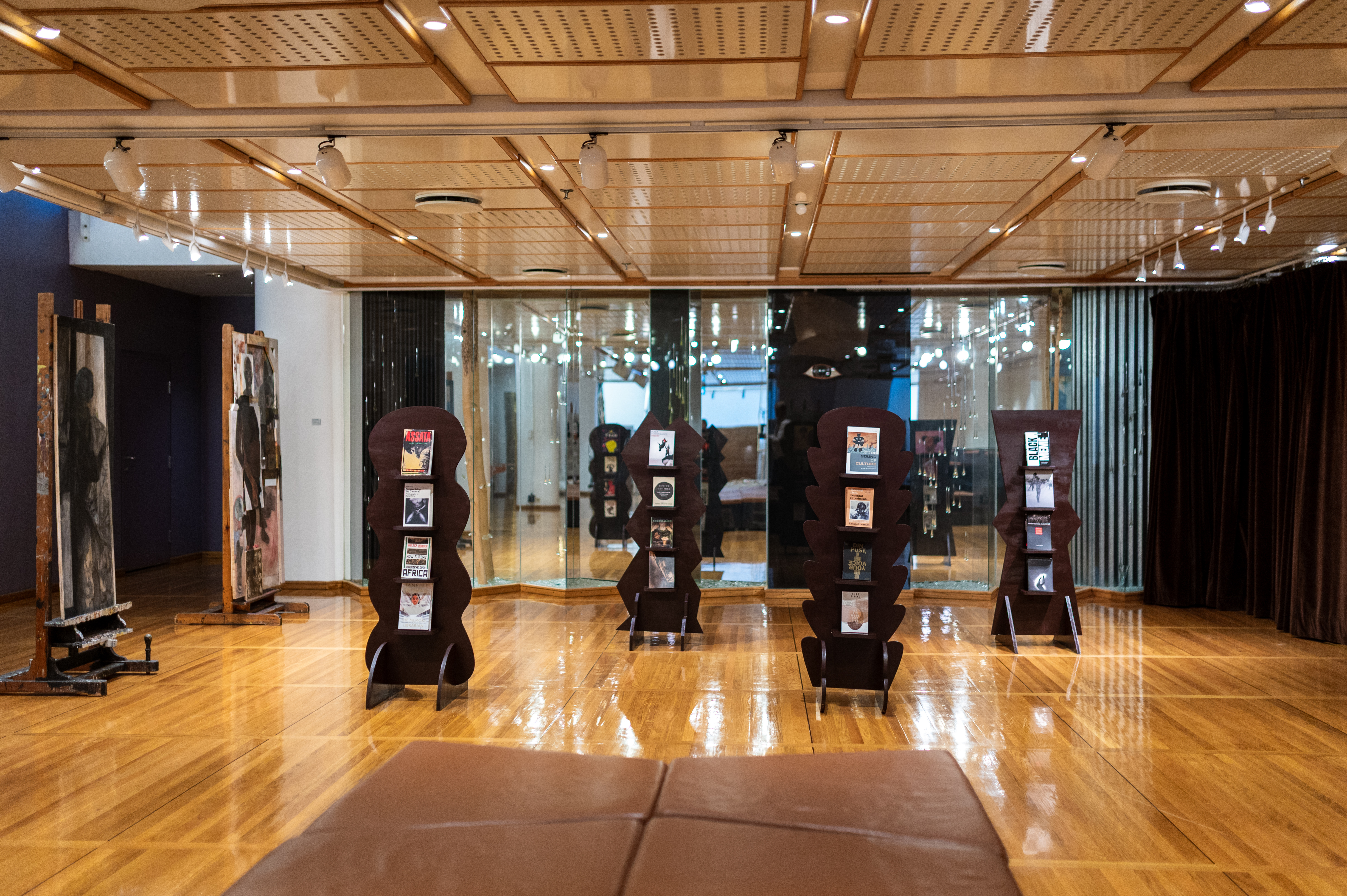 Bøkene som står utstilt i foajeen, står på fire skulpturar som er designa av Neslihan Ramzi. Utforminga er inspirert av karakterane i stykket SUKKER, og representerer dei ulike tidsperiodane hovudpersonen reiser til. Skulpturane er laga av naturleg materiale, og er festa saman som et puslespel; ei utforming som ofte dukkar opp installasjonane til ASSATA.