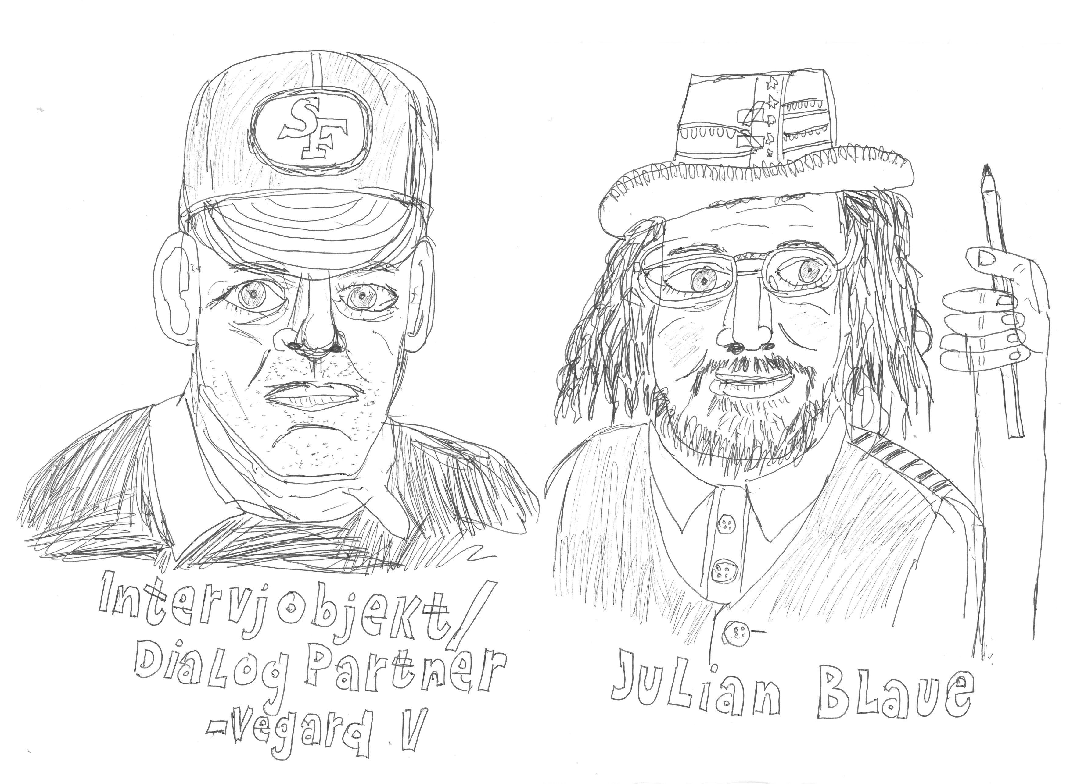 I utstillinga av Vegard Vinges måleri i foajeen til Det Norske Teatret står det ei seng. Her ligg performancekunstnar Julian Blaue i lag med Vegard Vinge. Dei skal snakke om den totale, radikale fiksjonen. Om den monstrøse verkelegheita. Og om Vinge/Müllers lange Ibsen saga, frå «Et dukkehjem» på Off-Off-Off-Ibsenfestivalen i 2006, via smadra lauk på det tyske utanriksdepartementet, til ei framsyning som sett huset i brann fortida: «Byggmeister Solness». Blaue spør: Kan denne framsyninga, eit overskotsritual og ein eksess av det umoglege, forhindre apokalypsen? No? Ikkje gå glipp av denne happeningen der den fjerde veggen mellom seng og publikum gjennomsugast.